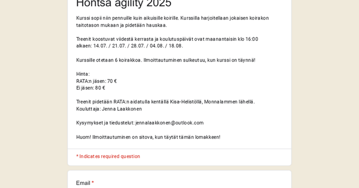 Myös agilityn höntsä kurssi avattu johon mahtuu muutama koirakko 😊